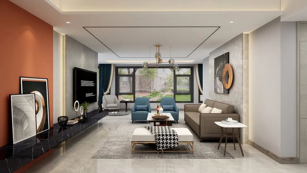 明亮橙为简约的现代空间增添了几多活跃氛围